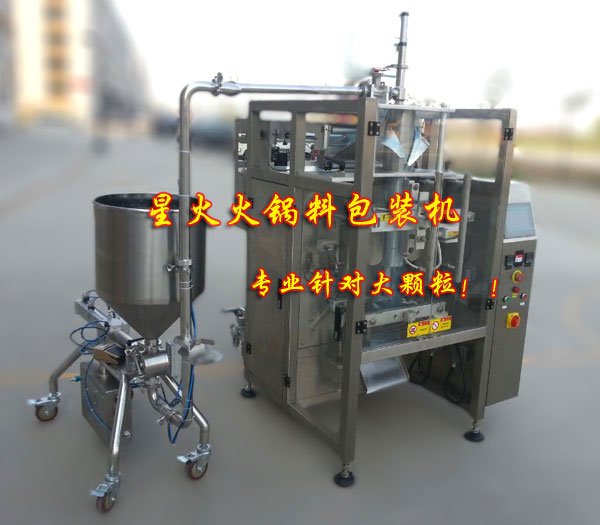 火鍋底料自動包裝機是星火包裝機械有限公司主要針對粘稠并帶有顆粒類的醬狀物料灌裝而設計的,物料接觸部分均采用316L不銹鋼材料制成;灌裝量和灌裝速度均可任意調節,罐裝精度高。廣泛應用于辣椒醬、麻辣醬、香辣醬、牛肉醬、豆辨醬、鮮辣醬、豆豉及郫縣豆醬等醬類包裝。