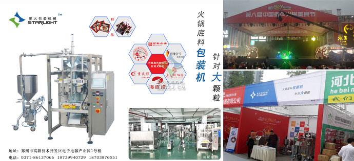 我相信經歷這次第八屆火鍋美食節,大家會對各大廠家以及我們星火設備有了全新的認知,我們也會根據客戶的需求打造不同款式的火鍋底料包裝機設備,我司的設備在逐步健全,歡迎廣大客戶給我們提供寶貴的意見和見解。