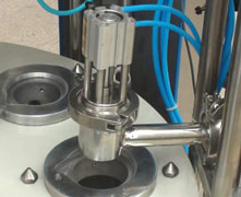 ○ 該灌裝生產(chǎn)線具有六個同步注醬灌裝頭,醬料可均勻地被擠壓灌裝到容器里。
