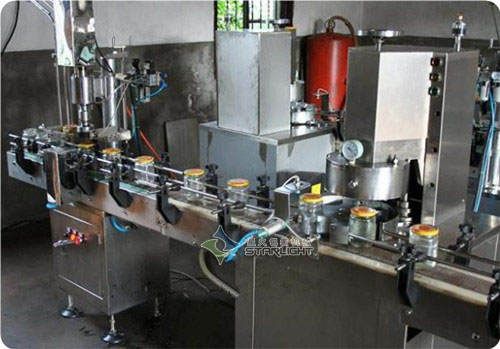 醬料真空封罐機適用于調味品、罐頭等采用目前最環保的玻璃瓶包裝,并對瓶內真空度有比較高要求的三旋、四旋蓋的玻璃瓶進行旋蓋封口(又稱玻璃瓶真空封罐機、玻璃瓶壓蓋機)。本機配上真空系統后,能對玻璃瓶內進行抽吸真空,以延長瓶內容物的保質期及口感。連續工作時可實行自動進瓶、自動進行抽吸真空、自動旋蓋、自動出瓶,如果配上相關的氣動控制元件后,還可以實行無蓋不進瓶的功能。適用園型及異型的玻璃瓶旋蓋、封口,是目前市場上生產能力最大的抽真空旋蓋機,為各食品廠、罐頭廠作為規模生產的首選產品。